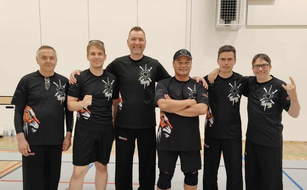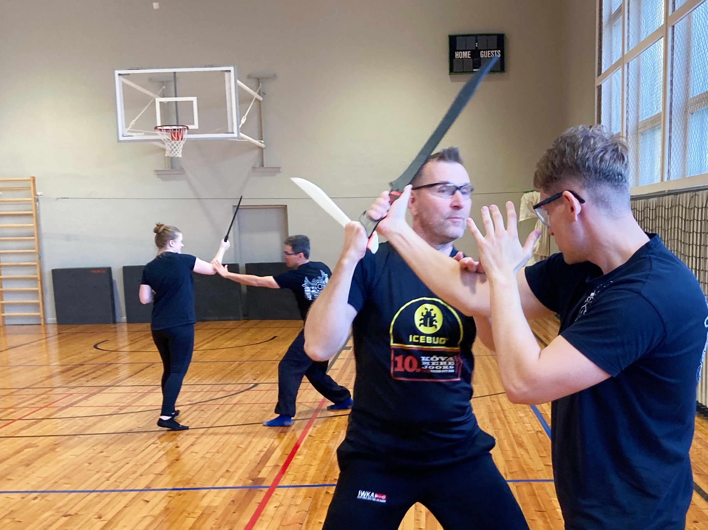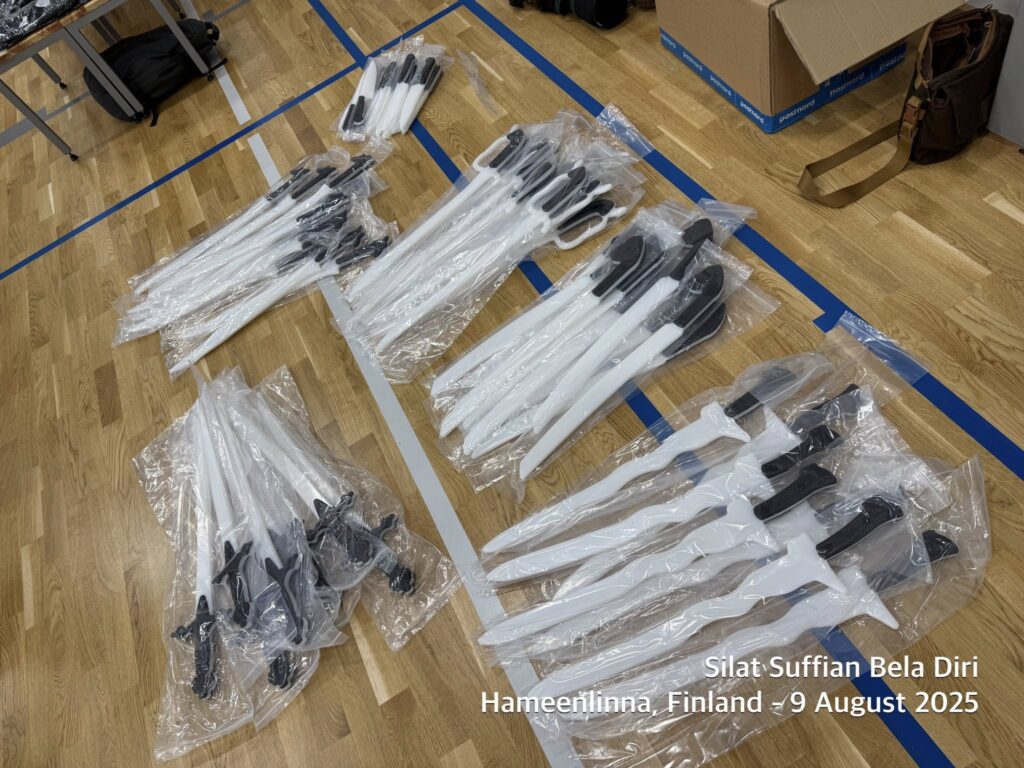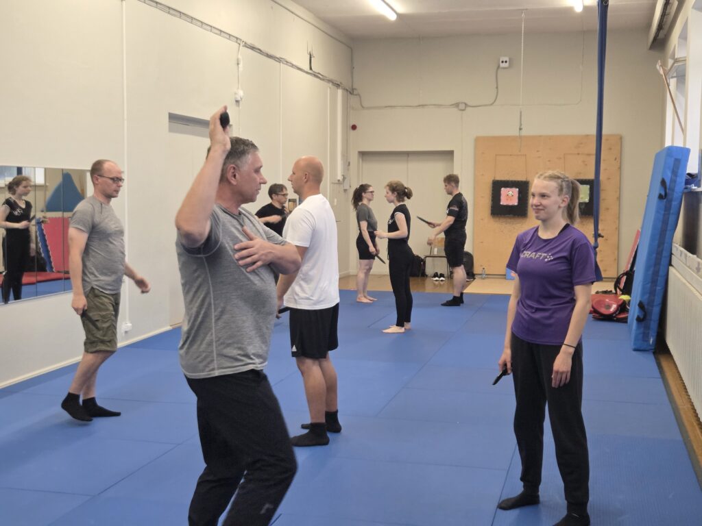 Selle pärast alustame relvatreeninguga, mis paneb paika liikumise (jalgade töö), käte koordinatsiooni ja kehaintegratsiooni ning arendab liigeste elastsust ja jõudu. Treeningutel kasutame eri pikkuse ja kujuga relvade mulaaže (nuga, kaigas, matšeete, küünisnuga, raudkang-kolmhark tekpi/sai jt) ja improviseeritud relvi (raudkang-kolmhark tekpi/sai, võitluspulk kubotan, pastakas, sall, jupp nööri, mobiiltelefoni laadimiskaabel jt).